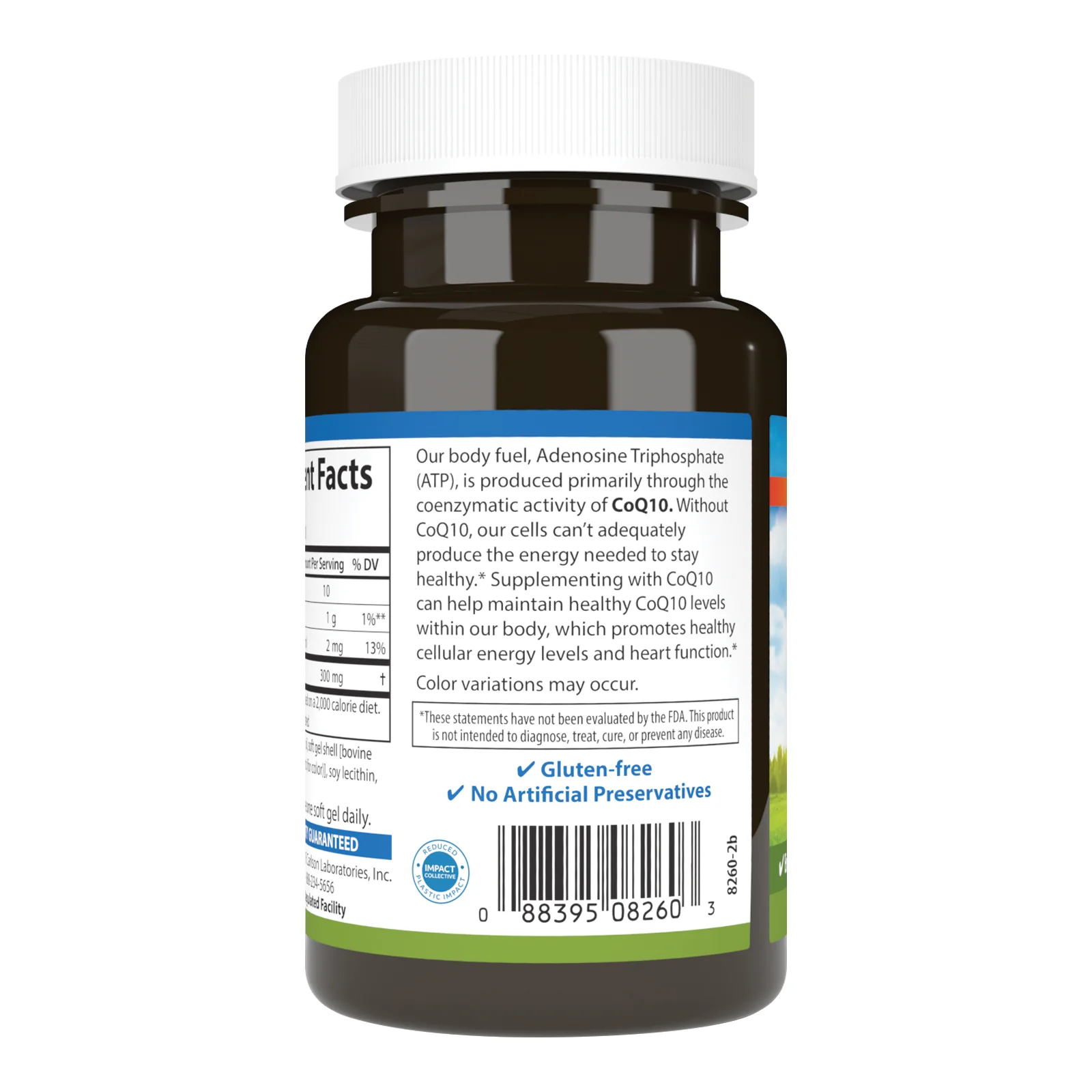 CoQ10 (coenzyme Q10) is like the spark plug for a car that ignites the fuel, so the engine can run. In our body, this fuel is called Adenosine Triphosphate (ATP), and it's produced primarily through the coenzymatic activity of CoQ10. Without CoQ10, our cells can't adequately produce the energy needed to stay healthy. Although our body naturally produces CoQ10, there are multiple reasons why this production may not be adequate, such as increasing age and poor diet. Supplementing with Carlson CoQ10 300 mg can restore CoQ10 levels within our body, so we can maintain healthy cellular energy levels. CoQ10 also plays an important role in healthy, graceful aging.