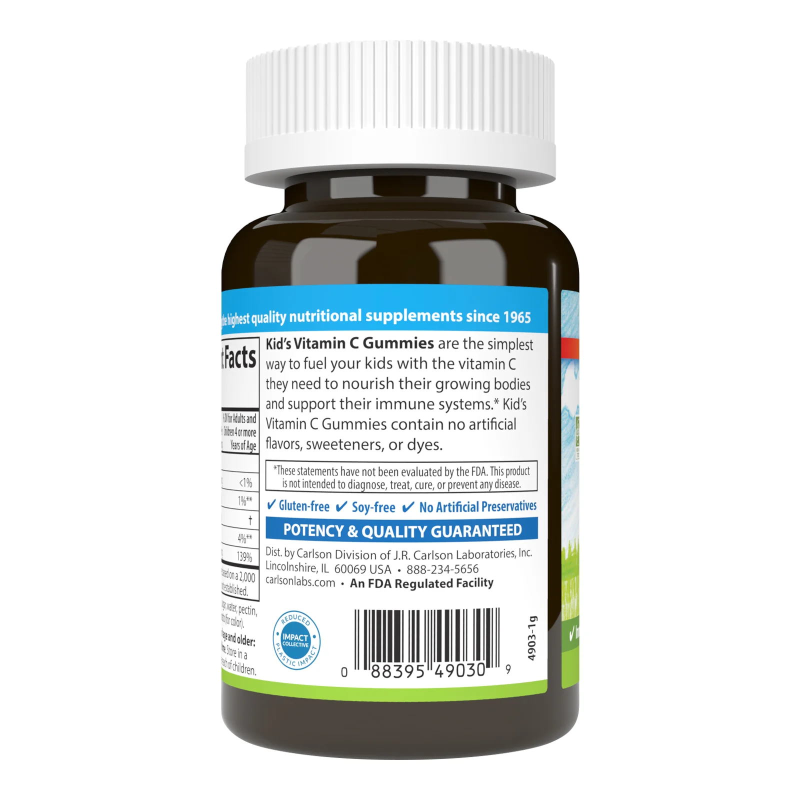 Kid's Vitamin C Gummies are the simplest way to fuel your kids with the vitamin C they need to nourish their growing bodies and to support their immune systems. Kid's Vitamin C Gummies provide 125 mg of vitamin C in each tangy orange wedge. Children can take one to two gummies daily, depending on their nutritional needs. Kid's Vitamin C Gummies are vegetarian and contain no artificial flavors, sweeteners, or dyes. Give your kids the antioxidant power of Carlson Kid's Vitamin C Gummies.