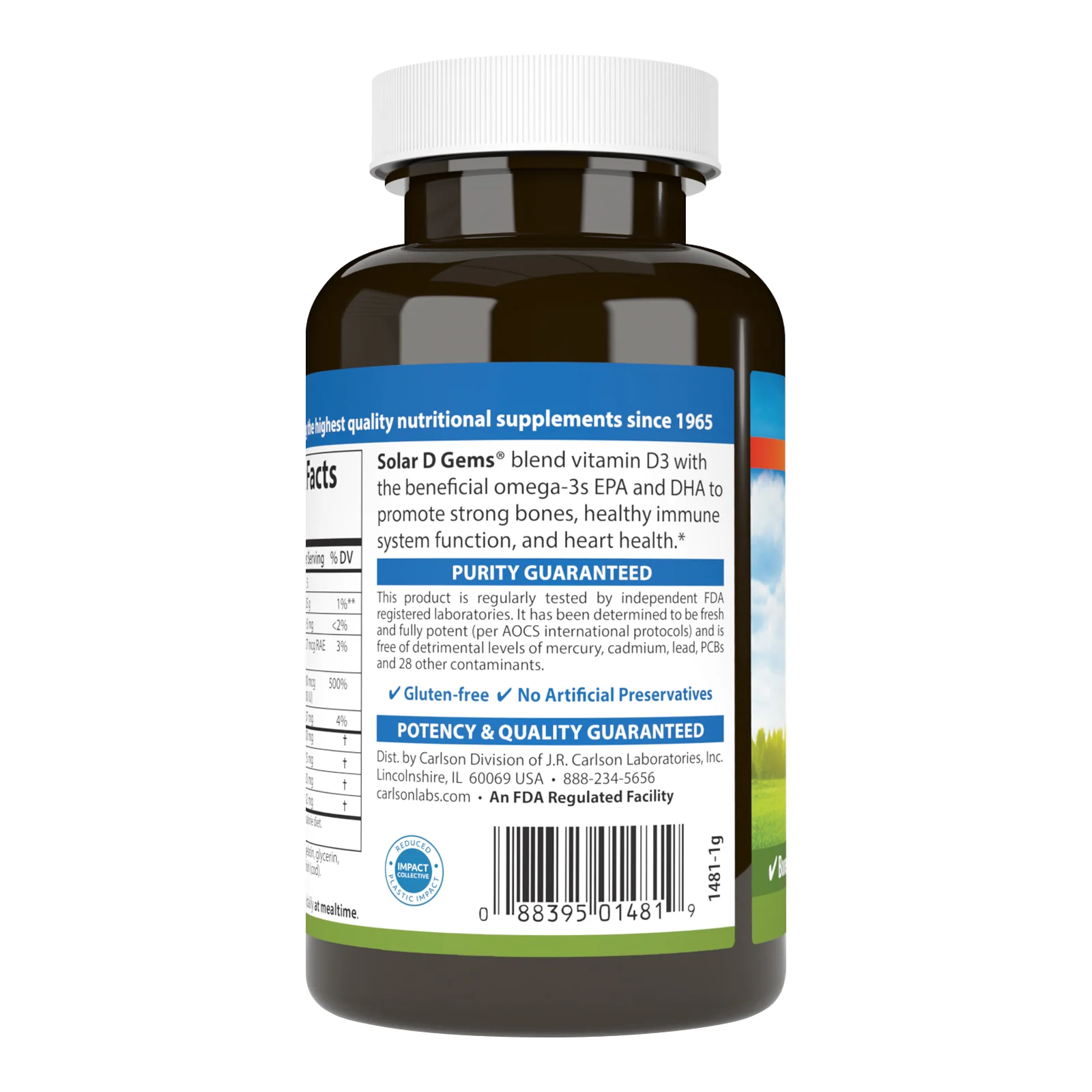 Solar D Gems® is a vitamin D3 supplement for those who don't get enough from food or the sun. Vitamin D is a superstar nutrient linked to many health benefits. What makes it so unique is that it's a vitamin you can get through food and also a hormone your body makes from the sun. Despite the multiple ways of getting vitamin D, many are still deficient due to changing seasons, sunscreen, skin color, age, and sun protection. Solar D Gems® also provides 115 mg of wild caught, sustainably sourced omega-3s, which support heart, brain, vision, and joint health.