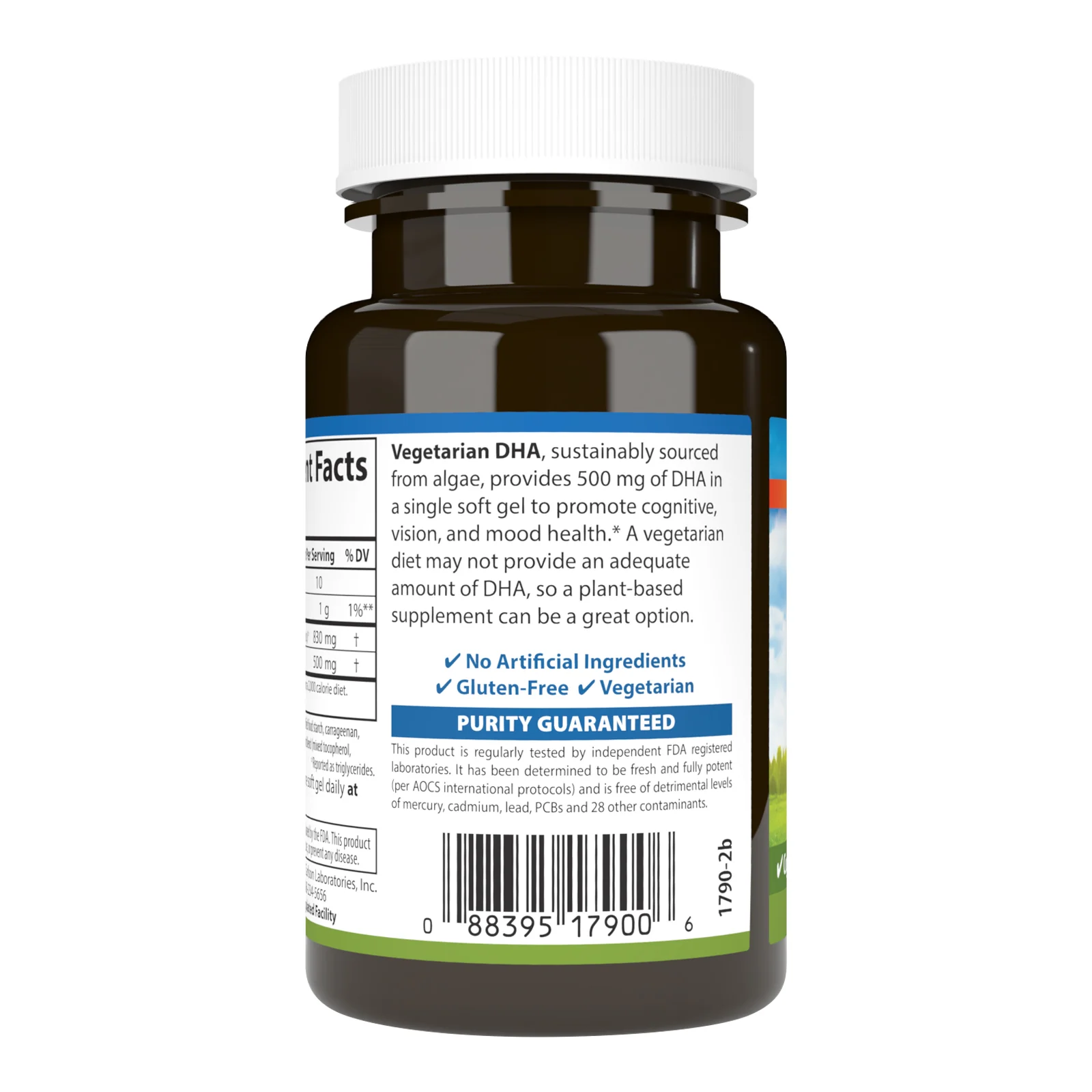 DHA is one of the most beneficial omega-3s, but a vegetarian diet may not provide an adequate amount. A plant-based supplement can be a great option. DHA is important for people of all ages to support cognitive, vision, and mood health. And it's especially important for women who are pregnant or nursing, as it promotes healthy brain and vision development in growing children. Vegetarian DHA provides 500 mg of DHA in a single soft gel and is tested by an FDA-registered laboratory for potency and quality.